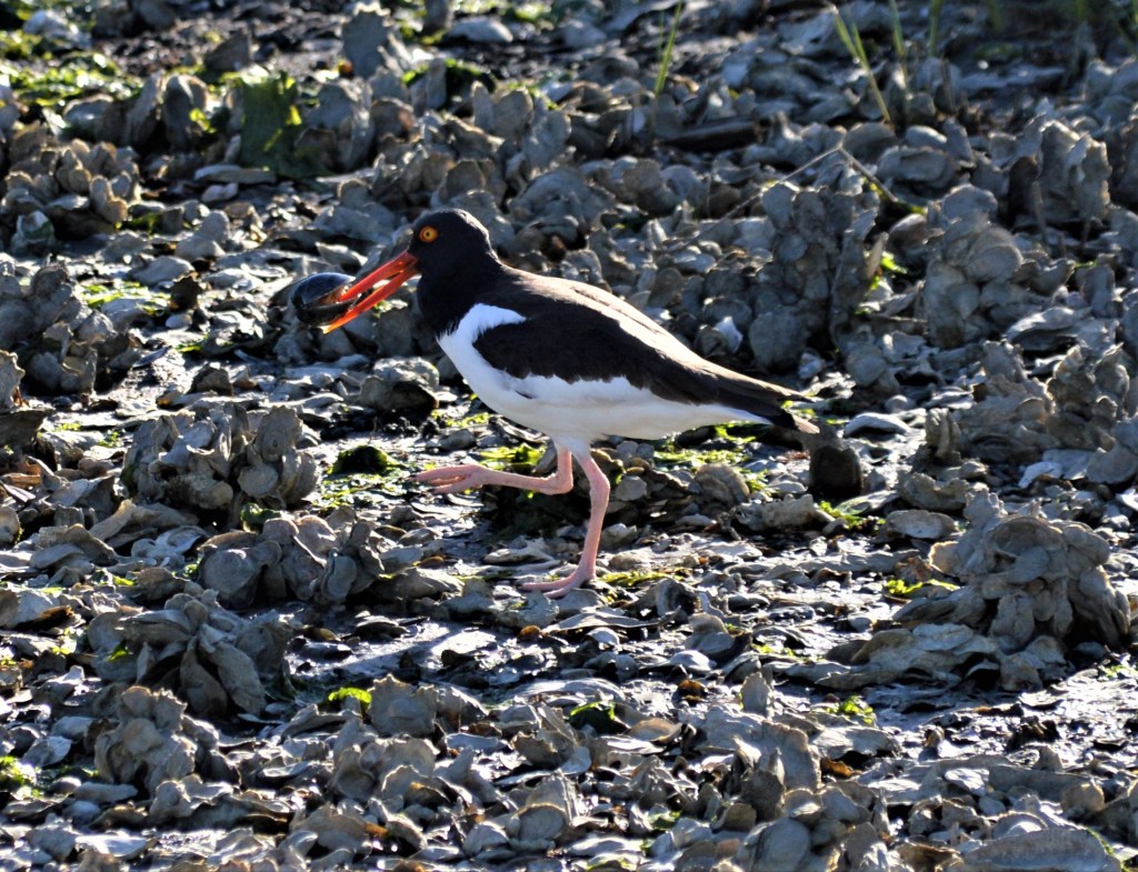 In addition to bivalve mollusks, the American oystercatcher also feeds on other invertebrates found along the shoreline, including crabs, worms, and small crustaceans. It may also opportunistically consume fish and marine worms.